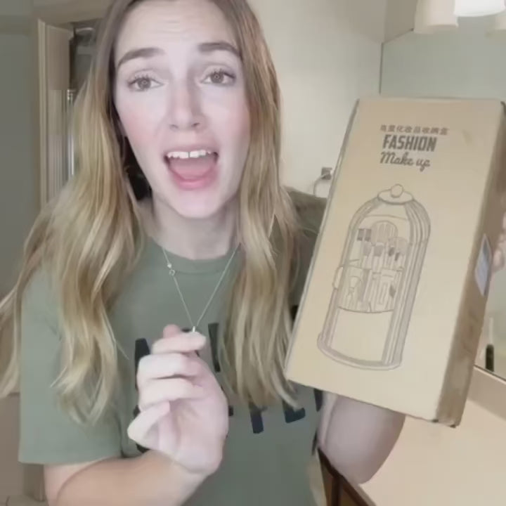 360° Rotating Makeup Brush Holder keeps your essentials easy to see and reach. Multiple compartments give every product a place, so your vanity stays clean, organized, and ready for glam.