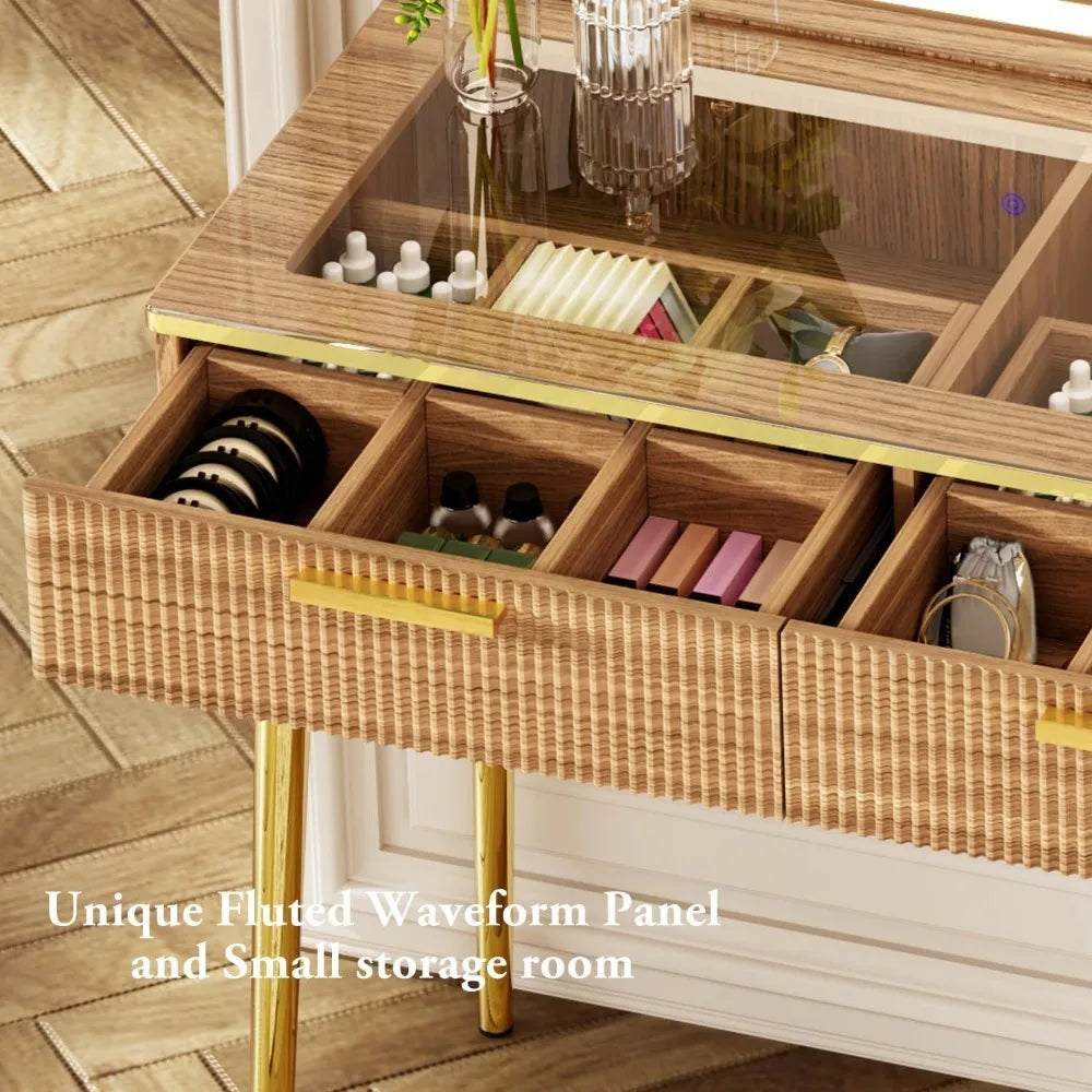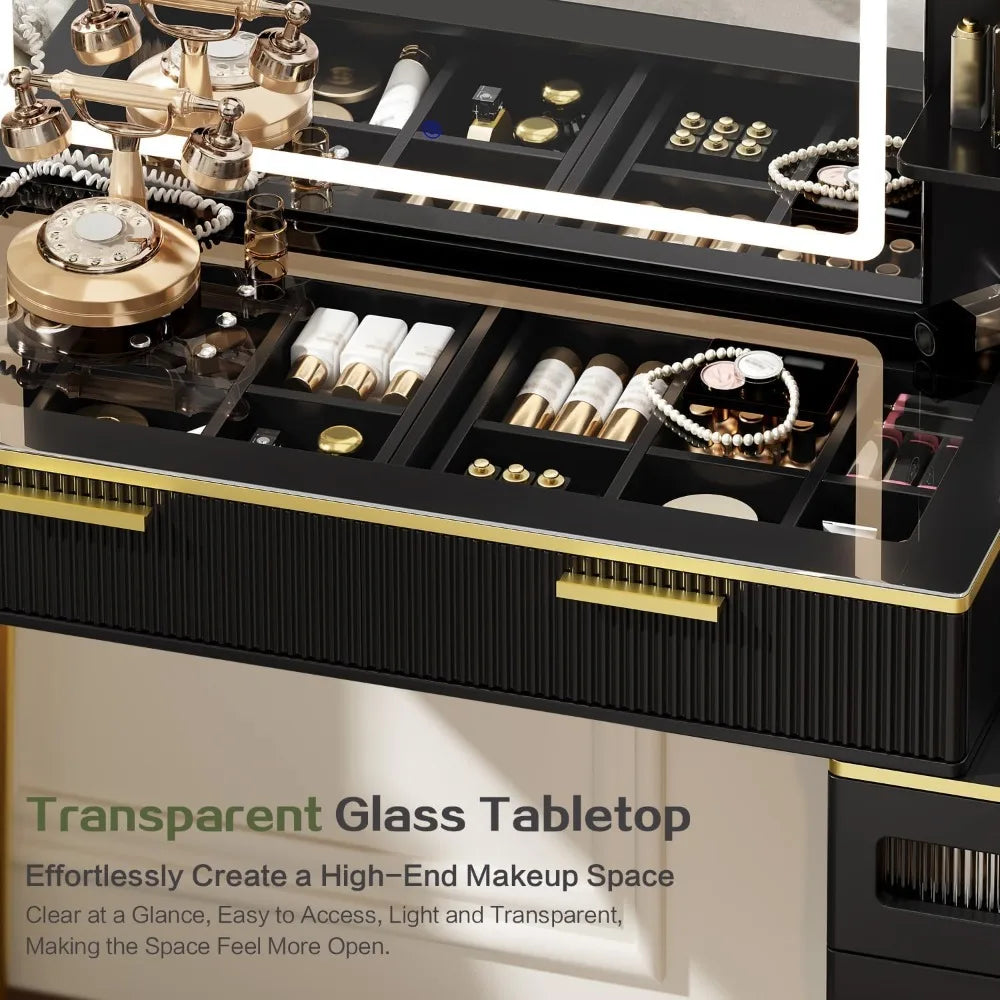 47" Modern Vanity Desk With LED Mirror 5 Drawers and Storage Shelves