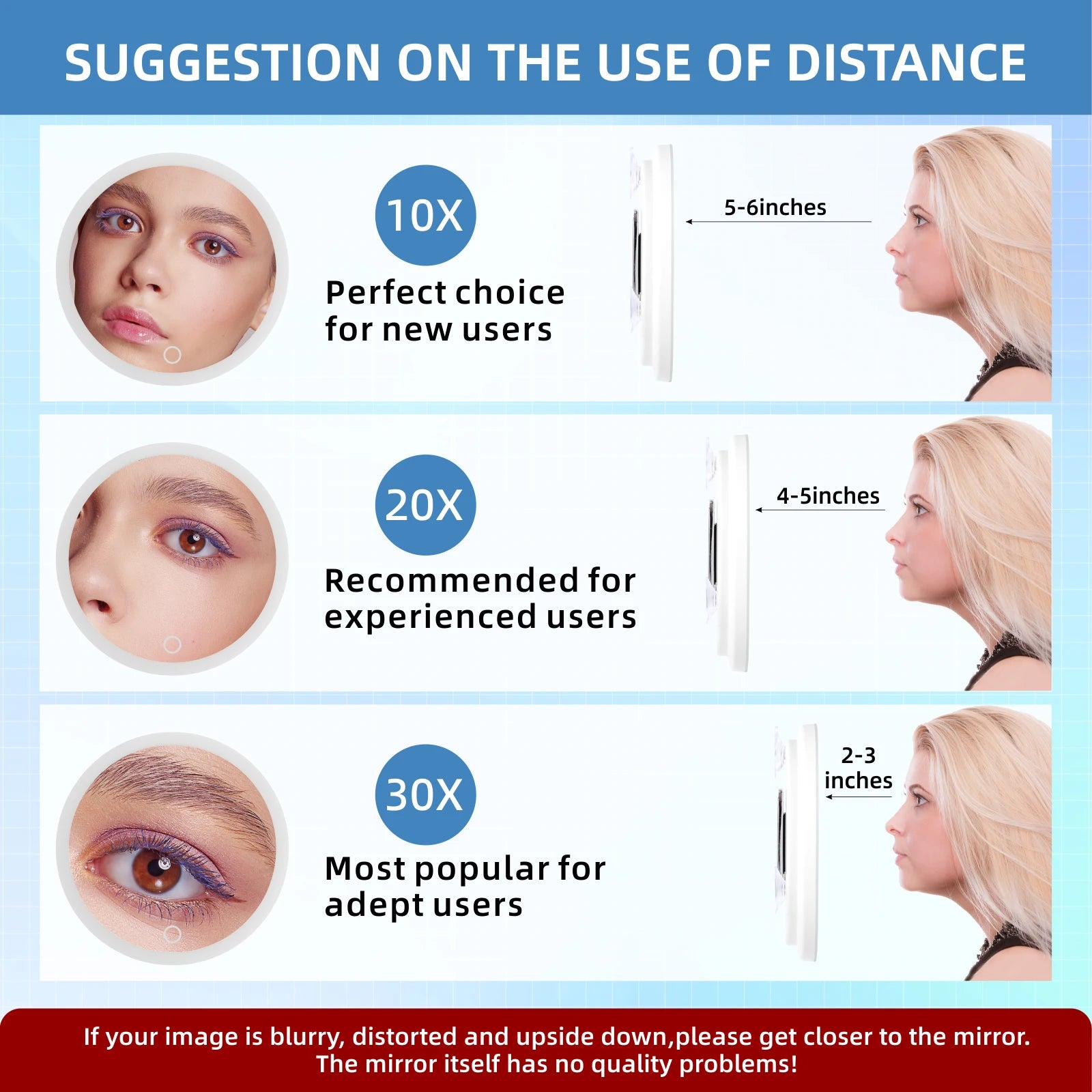 Rounded Standing Makeup Mirror With LED Light & Magnification [10X/20X/30X]