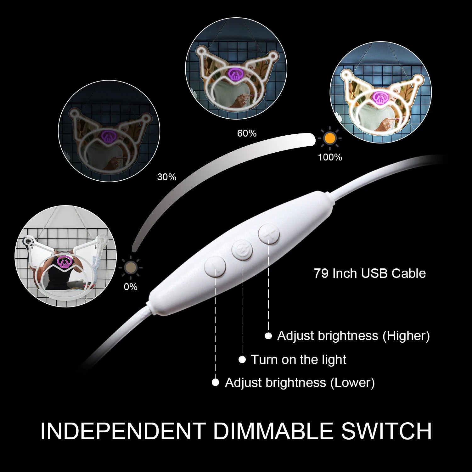 Sanrio Kuromi Purple Decor Mirror Neon Light