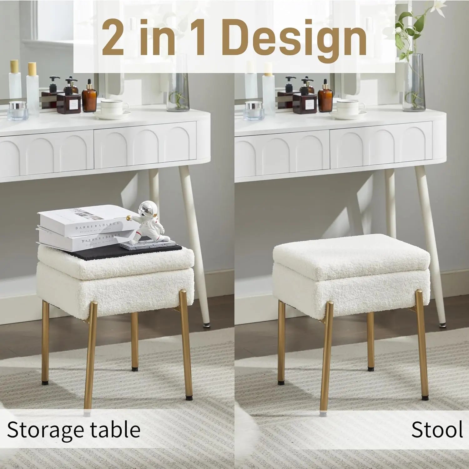 Vanity Desk Ottoman Stool with Storage